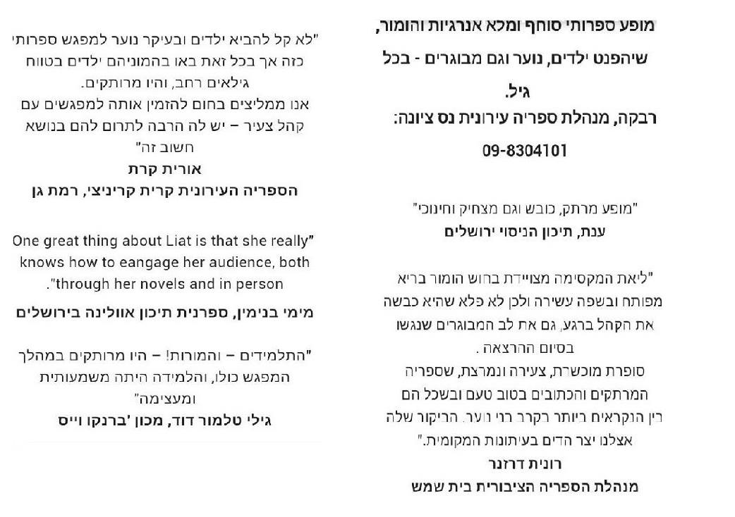 להזמנת הרצאות * לסדנת כתיבה איתי