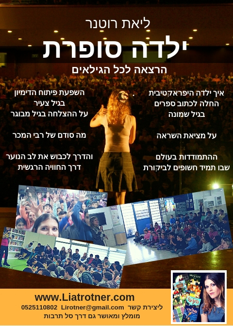 השנה ייפתחו סדנאות כתיבה חוויתית לילדים ולנוער בתל אביב בבית אריאלה, בספריית נס ציונה ובערים נוספות ברחבי הארץ. להרשמה לסדנת כתיבה בתל אביב (גילאי 8-12) :